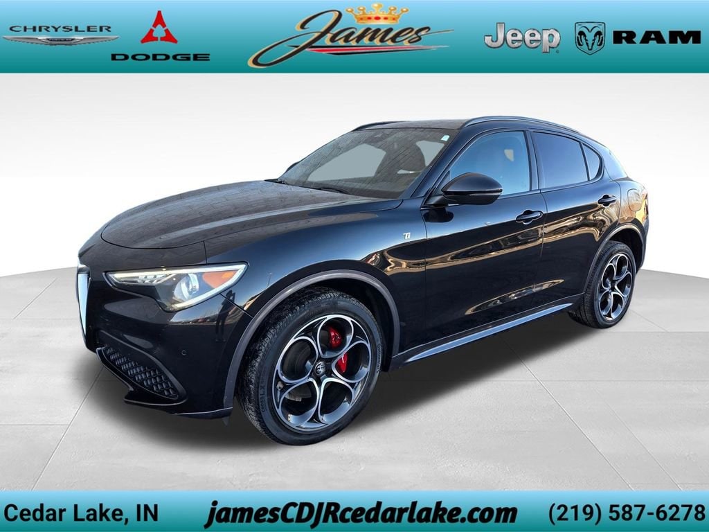 Vulcano Black Metallic 2023 Alfa Romeo Stelvio 4D Sport Utility Ti I4 22/28 City/Highway MPG 8-Speed Automatic AWD