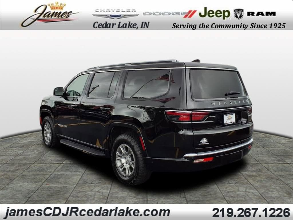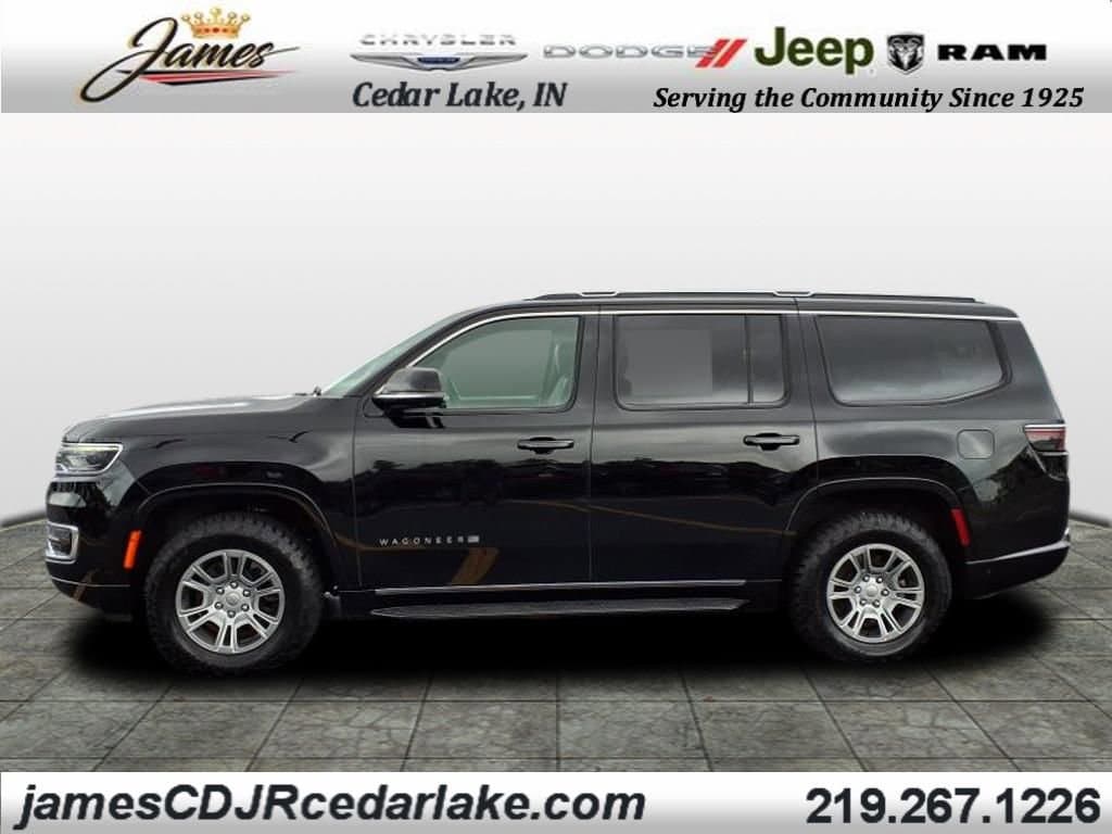 2023 Jeep Wagoneer Base CLEAN CARFAX, 1 OWNER, ADAPTIVE CRUISE CONTROL, APPLE CAR PLAY, ANDROID AUTO, GPS NAVIGATION, REMOTE START, UCONNECT 5 w/ 10.25 - INCH TOUCH SCREEN DISPLAY, TOUCH SCREEN DISPLAY, PUSH BUTTON START, KEYLESS ENTRY, HEATED FRONT SEATS, HEATED STEERING WHEEL, HEATED 2ND ROW SEATS, 4 WHEEL DRIVE / 4X4 / 4WD, TINTED WINDOWS, 8-WAY POWER DRIVER AND PASSENGER SEAT, POWER LUMBAR ADJUSTABLE DRIVER SEAT, POWER ADJUSTABLE PEDALS, TOW HITCH, ALPINE STEREO SYSTEM, BLUTOOTH, USB PORTS, AUXILLARY PORTS, UNIVERSAL GARAGE DOOR OPENER, LEATHER SEATING, ACTIVE LANE-MANAGEMENT SYSTEM, FULL-SPEED FORWARD-COLLISION WARNING PLUS, PARKVIEW REAR BACK UP CAMERA, PARKSENSE REAR PARK-ASSIST W/ STOP, BLIND SPOT AND CROSS PATH DETECTION, PEDESTRIAN/ CYCLIST EMERGENCY BRAKING, HEATED AND VENTILATED (COOLED) FRONT SEATS, ALUMINUM WHEELS, STEERING WHEEL W/ AUDIO CONTROLS, DRIVER SEAT MEMORY, INTEGRATED VOICE COMMAND W/ BLUETOOTH, DEEP TINT SUNSCREEN (PRIVACY) GLASS, ALL MECHANICAL REPAIRS AND MAINTENANCE HAS BEEN PERFORMED AND IS READY FOR IMMEDIATE DELIVERY!, 8-PASSENGER SEATING, SECOND AND THIRD ROW SPLIT BENCH SEATS, 5.7L V8 HEMI ENGINE, GPS/NAV/NAVI, PARKSENSE FR/RR PARK ASSIST W/STOP, WIRELESS CHARGING PAD, 4G LTE WI-FI HOT SPOT, LEATHER TRIMMED BUCKET SEATS, VENTILATED FRONT SEATS, HANDS FREE POWER LIFTGATE, 4D Sport Utility, 5.7L V8, 8-Speed Automatic, 4WD, Diamond Black Crystal Pearlcoat, Black Leather, 10 Speakers, 2nd Row Manual Window Shades, 3rd row seats: bench, 4-Wheel Disc Brakes, ABS brakes, Active Lane Management System, Adaptive Cruise Control w/Stop & Go, Adjustable pedals, AM/FM radio: SiriusXM with 360L, Anti-whiplash front head restraints, Audio memory, Auto High Beam Headlamp Control, Auto-dimming door mirrors, Auto-dimming Rear-View mirror, Auto-leveling suspension, Automatic temperature control, Brake assist, Bumpers: body-color, Compass, Convenience Group I, Delay-off headlights, Driver door bin, Driver vanity mirror, Dual front impact airbags, Dual front side impact airbags, Electronic Stability Control, Emergency communication system: Automatic SOS Call, Exterior Parking Camera Rear, Four wheel independent suspension, Front Bucket Seats, Front Center Armrest w/Storage, Front dual zone A/C, Front fog lights, Front reading lights, Fully automatic headlights, Garage door transmitter, Heated door mirrors, Heated front seats, Heated Second Row Seats, Heated steering wheel, Illuminated entry, Knee airbag, Leather Trimmed Bucket Seats, Low tire pressure warning, Memory seat, Navigation System, Normal Duty Suspension, Occupant sensing airbag, Outside temperature display, Overhead airbag, P&P Park & Unpark Assist w/Stop System, Panic alarm, Passenger door bin, Passenger seat mounted armrest, Passenger vanity mirror, Pedal memory, Power adjustable front head restraints, Power door mirrors, Power driver seat, Power Liftgate, Power passenger seat, Power steering, Power windows, Quick Order Package 22E (DISC), Radio: Uconnect 5 Nav w/10.1" Display, Rain Sensitive Windshield Wipers, Rear air conditioning, Rear anti-roll bar, Rear dual zone A/C, Rear reading lights, Rear seat center armrest, Rear window defroster, Rear window wiper, Reclining 3rd row seat, Remote keyless entry, Security system, Side Distance Warning, Speed control, Speed-sensing steering, Speed-Sensitive Wipers, Split folding rear seat, Steering wheel memory, Steering wheel mounted audio controls, Surround View Camera System, Tachometer, Telescoping steering wheel, Tilt steering wheel, Traction control, Trip computer, Turn signal indicator mirrors, Variably intermittent wipers, Ventilated front seats, Wireless Charging Pad. CARFAX One-Owner. Diamond Black Crystal Pearlcoat
