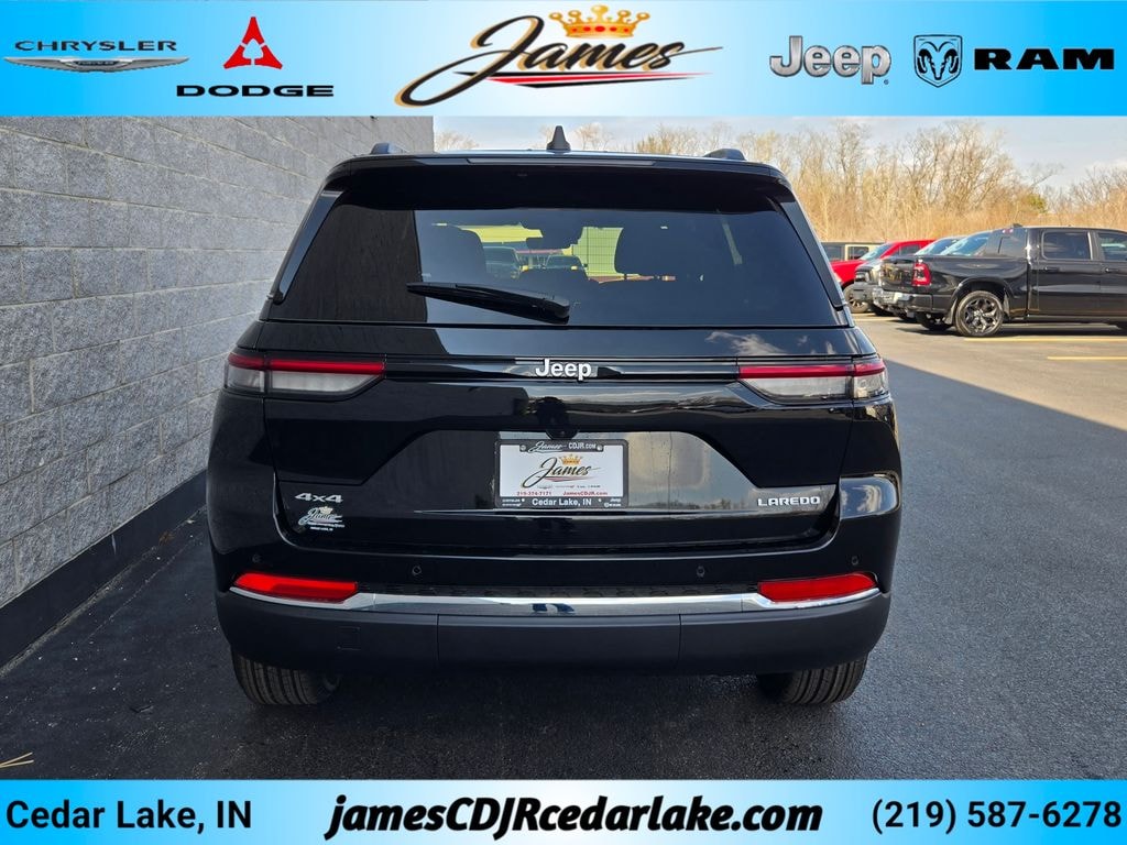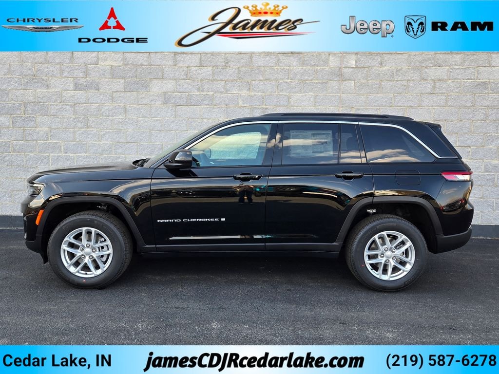 Quick Order Package 22J Laredo X (Power Liftgate and Power Sunroof), Grand Cherokee Laredo X, 4D Sport Utility, 3.6L V6 24V VVT, 8-Speed Automatic, 4WD, Diamond Black Crystal Pearlcoat, Black Cloth, Automatic temperature control, Front dual zone A/C, Radio: Uconnect 5 with 8.4" Display, 4-Wheel Disc Brakes, 6 Speakers, ABS brakes, Air Conditioning, AM/FM radio: SiriusXM, Auxiliary Battery, Brake assist, Bumpers: body-color, Cloth Seats, Compass, Delay-off headlights, Driver door bin, Driver vanity mirror, Dual front impact airbags, Dual front side impact airbags, Electronic Stability Control, Front Center Armrest w/Storage, Front License Plate Bracket, Fully automatic headlights, Gloss Black Exterior Mirrors, Heated door mirrors, Heated Exterior Mirrors, Illuminated entry, Knee airbag, Low tire pressure warning, Manual Folding Exterior Mirrors, Occupant sensing airbag, Outside temperature display, Overhead console, Panic alarm, ParkView Rear Back-Up Camera, Passenger door bin, Passenger vanity mirror, Power door mirrors, Power steering, Power windows, Rear window defroster, Rear window wiper, Security system, Speed control, Speed-Sensitive Wipers, Split folding rear seat, Spoiler, Tachometer, Telescoping steering wheel, Tilt steering wheel, Traction control, Trip computer, Variably intermittent wipers, Voltmeter, and Wheels: 18" x 8.0" Fully Painted Aluminum 1. Recent Arrival! 2026 Jeep Grand Cherokee Laredo X 4D Sport Utility 3.6L V6 24V VVT 19/26 City/Highway MPG 8-Speed Automatic 4WD