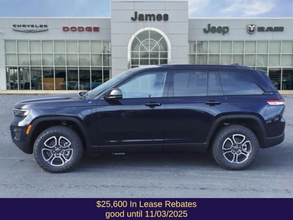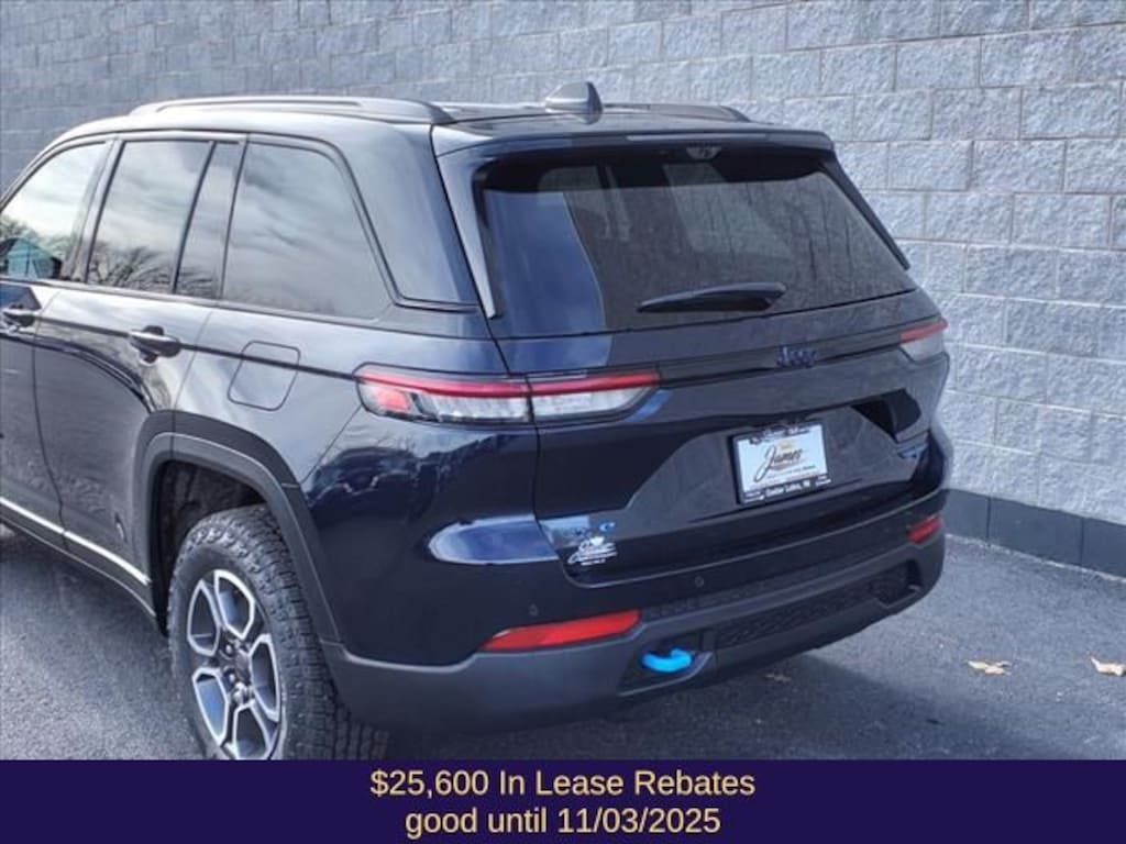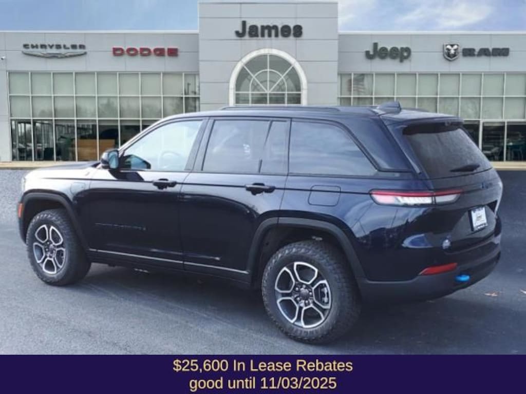 Advanced Protech Group II (Intersection Collision Assist System, Night Vision/Pedestrian-Animal Detection, ParkSense Front/Rear Park Assist w/Stop, and Surround View Camera System), Luxury Tech Group III (2nd-Row Manual Window Shades, Hands-Free Power Liftgate, Memory Steering Column, Passive Entry - Front/Rear Doors, Liftgate, Power Tilt/Telescope Steering Column, Rain Sensitive Windshield Wipers, Rearview Autodim Digital Display Mirror, and Wireless Charging Pad), Quick Order Package 27K, Two Tone Paint Group, Grand Cherokee 4xe Trailhawk, 4D Sport Utility, 8-Speed Automatic, Midnight Sky, Global Black Leather, Automatic temperature control, Capri Leather/Suede Seats, Electronic Stability Control, Front dual zone A/C, Garage door transmitter, Heated front seats, Heated rear seats, Heated steering wheel, Low tire pressure warning, Memory seat, Navigation System, Power Liftgate, Radio: Uconnect 5 Nav w/10.1" Display, Rear window defroster, Rear window wiper, Telescoping steering wheel, Tilt steering wheel, Ventilated front seats, Wheels: 18" x 8" Fully Painted Aluminum, 10 Speakers, 3.70 Rear Axle Ratio, 4-Wheel Disc Brakes, ABS brakes, Adaptive suspension, Air Conditioning, Alloy wheels, AM/FM radio: SiriusXM with 360L, Anti-whiplash front head restraints, Audio memory, Auto High-beam Headlights, Auto-dimming door mirrors, Auto-dimming Rear-View mirror, Auto-leveling suspension, Brake assist, Bumpers: body-color, Compass, Delay-off headlights, Driver door bin, Driver vanity mirror, Dual front impact airbags, Dual front side impact airbags, Four wheel independent suspension, Front anti-roll bar, Front Bucket Seats, Front Center Armrest w/Storage, Front fog lights, Front License Plate Bracket, Front reading lights, Fully automatic headlights, Heated door mirrors, Heavy Duty Suspension, Illuminated entry, Knee airbag, Leather Shift Knob, Occupant sensing airbag, Outside temperature display, Overhead airbag, Overhead console, Panic alarm, Passenger door bin, Passenger vanity mirror, Power door mirrors, Power driver seat, Power passenger seat, Power steering, Power windows, Radio data system, Rear anti-roll bar, Rear reading lights, Rear seat center armrest, Remote keyless entry, Security system, Speed control, Speed-Sensitive Wipers, Split folding rear seat, Spoiler, Steering wheel mounted audio controls, Tachometer, Traction control, Trip computer, Turn signal indicator mirrors, Variably intermittent wipers, and Voltmeter. 2024 Jeep Grand Cherokee Trailhawk 4xe 4D Sport Utility 2.0L I4 DOHC 8-Speed Automatic 4WD Price includes: $7750 - 2024 Retail Bonus Cash. Exp. 11/03/2025