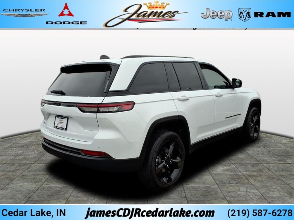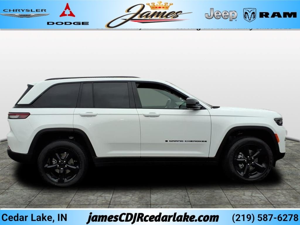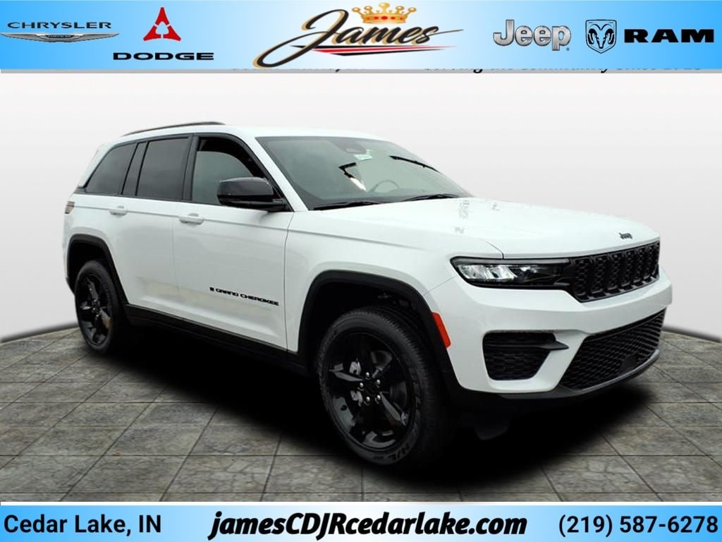 Quick Order Package 23M Altitude X (115V Auxiliary Power Outlet, Altitude X, Black Headliner, Capri Leatherette/Suede Seats, Delete Laredo Badge, Gloss Black Exterior Accents, Heated Front Seats, Heated Steering Wheel, Power Liftgate, Power Sunroof, Rain Sensitive Windshield Wipers, Remote Start System, Tire Fill Alert, Wheels: 18" x 8" Fully Painted Aluminum 1, and Wireless Charging Pad), Trailer Tow Package (180 Amp Alternator, 7 and 4-Pin Wiring Harness, Automatic Headlamp Levelling System, Class IV Receiver Hitch, Heavy-Duty Engine Cooling, Rear Load Levelling Suspension, and Trailer Hitch Zoom), Grand Cherokee Altitude X, 4D Sport Utility, 3.6L V6 24V VVT, 8-Speed Automatic, 4WD, Bright White Clearcoat, Global Black Artificial Leather, Automatic temperature control, Front dual zone A/C, Heated door mirrors, Radio: Uconnect 5 with 8.4" Display, Wheels: 17" x 6.5" Fully Painted Aluminum, 4-Wheel Disc Brakes, 6 Speakers, ABS brakes, Air Conditioning, Delay-off headlights, Driver door bin, Driver vanity mirror, Dual front impact airbags, Dual front side impact airbags, Front Center Armrest w/Storage, Knee airbag, Low tire pressure warning, Occupant sensing airbag, Overhead console, Panic alarm, Passenger door bin, Passenger vanity mirror, Power door mirrors, Power steering, Power windows, Rear window defroster, Security system, Split folding rear seat, Tachometer, Telescoping steering wheel, Tilt steering wheel, Traction control, Trip computer, and Voltmeter. 2025 Jeep Grand Cherokee Altitude X 4D Sport Utility 3.6L V6 24V VVT 19/26 City/Highway MPG 8-Speed Automatic 4WD