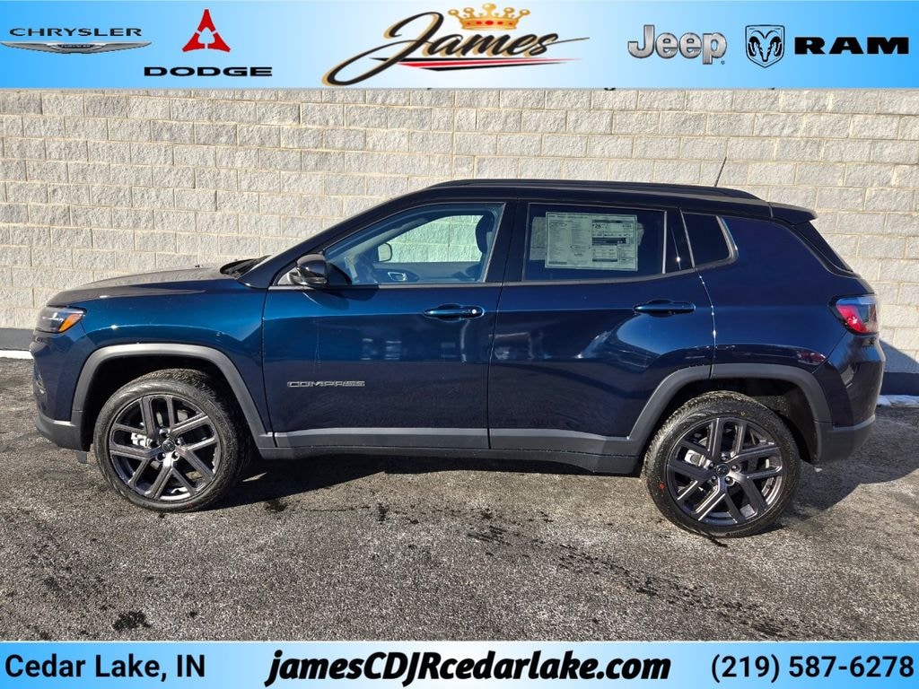 Limited Altitude Pack (Black Day Light Opening Moldings, Gloss Black Surround/Neutral Gray Rings, Neutral Gray Exterior Accents, Neutral Gray Exterior Badging, Piano Black Interior Accents, and Wheels: 19" x 7.5" Aluminum Painted), Quick Order Package 29W Limited Altitude, Sun, Sound and Navigation Group (10.1" Touchscreen Display, Alexa Built-In, Cluster 10.25" TFT Color Display, Connected Travel and Traffic Services, GPS Navigation, HD Radio, Integrated Voice Command with Bluetooth, Power Front/Fixed Rear Full Sunroof, Premium Alpine Speaker System, and SiriusXM with 360L), Compass Limited, 4D Sport Utility, 2.0L I4 DOHC, 8-Speed Automatic, 4WD, fathom blue pearl coat, Black Artificial Leather, Auto High-beam Headlights, Auto-dimming Rear-View mirror, Automatic temperature control, Front dual zone A/C, Power Liftgate, Radio: Uconnect 5 with 10.1" Display, 4-Wheel Disc Brakes, 6 Speakers, ABS brakes, Air Conditioning, Delay-off headlights, Driver door bin, Driver vanity mirror, Dual front impact airbags, Dual front side impact airbags, Front Center Armrest w/Storage, Front fog lights, Fully automatic headlights, Heated door mirrors, Knee airbag, Leatherette Seats, Low tire pressure warning, Occupant sensing airbag, Overhead console, Panic alarm, Passenger door bin, Passenger vanity mirror, Power door mirrors, Power steering, Power windows, Rear window defroster, Security system, Split folding rear seat, Tachometer, Telescoping steering wheel, Tilt steering wheel, Traction control, and Trip computer. 2026 Jeep Compass Limited 4D Sport Utility 2.0L I4 DOHC 23/31 City/Highway MPG 8-Speed Automatic 4WD