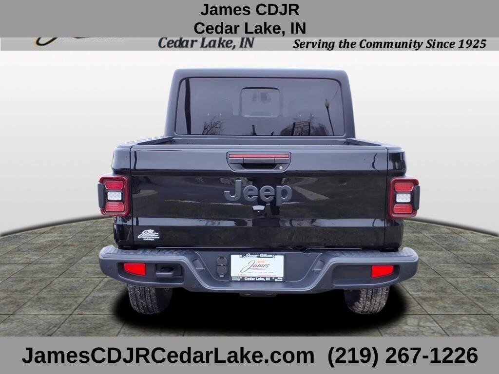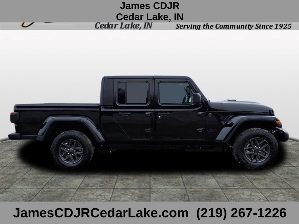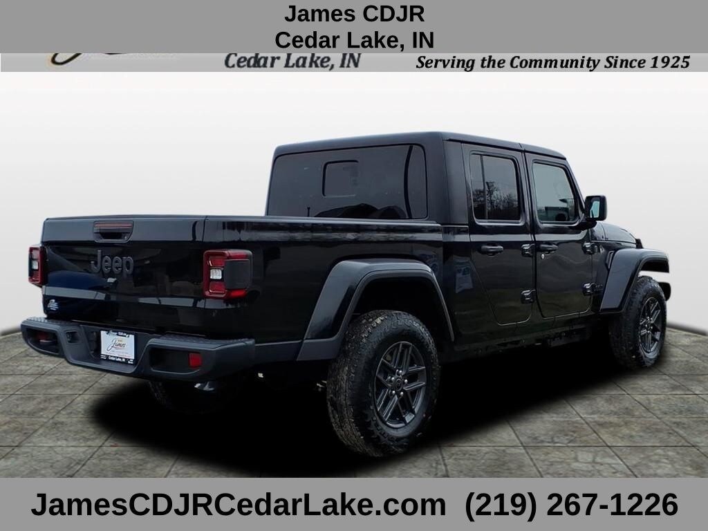 Convenience Group (Air Conditioning with Auto Temp Control, Cluster 7.0" TFT Color Display, Corning Gorilla Glass, Daytime Running Lamp System, Emergency/Assistance Call, Front Door Locks 2-Door Passive Entry, Heated Front Seats, Heated Steering Wheel, Remote Start System, and Universal Garage Door Opener), Dark Sky Appearance Package (2-Piece Body Color Fender Flares, Mold in Color Bumper with Gloss Black, and Performance Hood), LED Headlamp and Fog Lamp Group (Daytime Running Lamps LED Accents, Front LED Fog Lamps, and LED Premium Reflector Headlamps), Quick Order Package 24S Sport S (Advanced Brake Assist, Automatic Headlamps, Deep Tint Sunscreen Windows, Full Speed Forward Collision Warning Plus, Normal Duty Plus Suspension, Power Heated Mirrors, Premium Wrapped Steering Wheel, Security Alarm, Sun Visors with Illuminated Vanity Mirrors, and Wheels: 17" x 7.5" Gray), Safety Group (Auto High Beam Headlamp Control, Blind Spot and Cross Path Detection, LED Taillamps, and ParkSense Rear Park Assist System), Gladiator Sport S, 4D Crew Cab, 3.6L V6 24V VVT, 8-Speed Automatic, 4WD, black clearcoat, Black Cloth, 4G LTE Wi-Fi Hot Spot, 8 Speakers, Alexa Built-in, Black 3-Piece Hard Top, Delay-off headlights, Freedom Panel Storage Bag, Front fog lights, Panic alarm, Radio: Uconnect 5 with 12.3" Display, Rear Sliding Window, Rear Window Defroster, Speed control, Traction control, 110 Mph Vehicle Max Speed Calibration, 12.3" Touchscreen Display, 3.73 Rear Axle Ratio, 4-Wheel Disc Brakes, ABS brakes, Air Conditioning, AM/FM radio: SiriusXM with 360L, Apple CarPlay, Apple CarPlay/Android Auto, Brake assist, Compass, Connectivity - US/Canada, Driver door bin, Driver vanity mirror, Dual front impact airbags, Dual front side impact airbags, Electronic Stability Control, Front anti-roll bar, Front Bucket Seats, Front Center Armrest w/Storage, Front License Plate Bracket, Front reading lights, Google Android Auto, Illuminated entry, Integrated roll-over protection, Low tire pressure warning, Manufacturer's Statement of Origin, MOPAR All-Weather Slush Mats, MOPAR Spray in Be