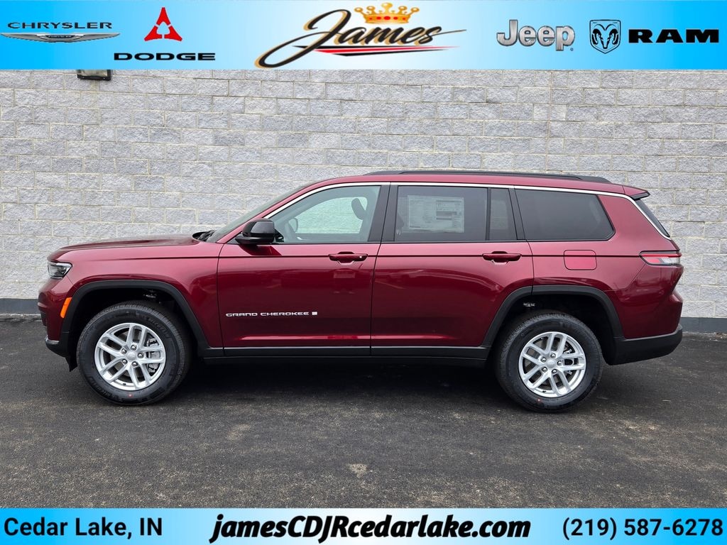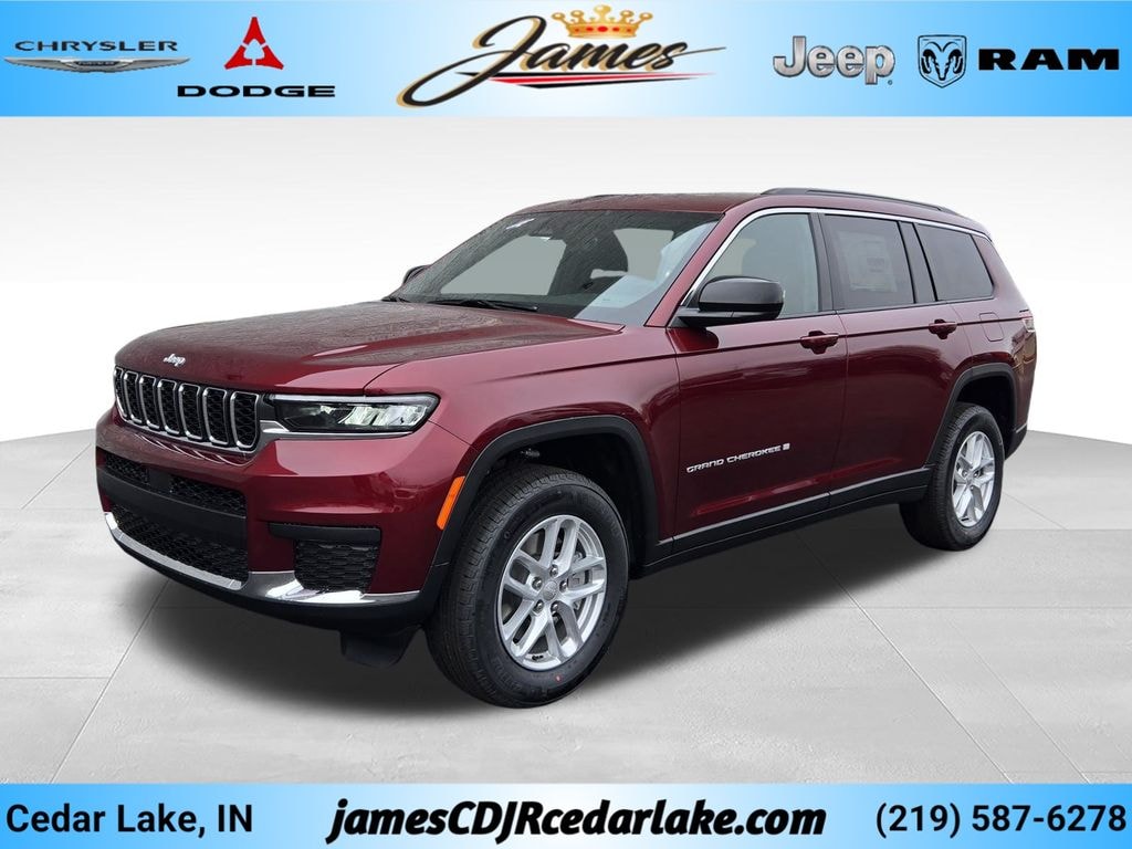 Quick Order Package 22J Laredo X (115V Auxiliary Power Outlet, 3rd Row Charge-Only USB Ports, Heated Front Seats, Heated Steering Wheel, Power Liftgate, Power Sunroof, Rain Sensitive Windshield Wipers, Remote Start System, Tire Fill Alert, and Wireless Charging Pad), Grand Cherokee L Laredo, 4D Sport Utility, 3.6L V6 24V VVT, 8-Speed Automatic, 4WD, Velvet Red Pearlcoat, Black Cloth, Automatic temperature control, Front dual zone A/C, Integrated Voice Command with Bluetooth, Radio: Uconnect 5 with 8.4" Display, Rear air conditioning, 4-Wheel Disc Brakes, 6 Speakers, ABS brakes, Air Conditioning, Bumpers: body-color, Delay-off headlights, Dual front impact airbags, Dual front side impact airbags, Fully automatic headlights, Knee airbag, Low tire pressure warning, Occupant sensing airbag, Panic alarm, Power door mirrors, Power steering, Power windows, Rear window defroster, Security system, Traction control, and Wheels: 18" x 8.0" Fully Painted Aluminum 1. 2026 Jeep Grand Cherokee L Laredo 4D Sport Utility 3.6L V6 24V VVT 8-Speed Automatic 4WD