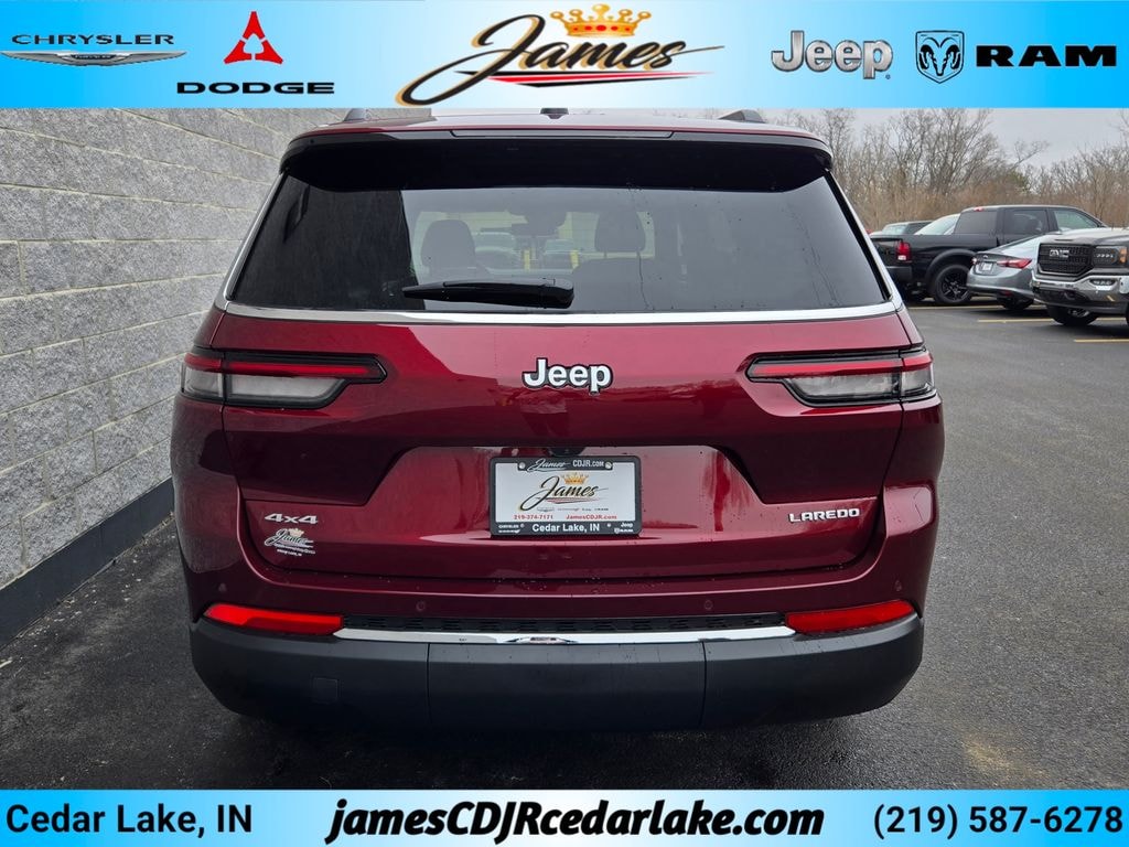 ** Adaptive Cruise Control, ** Apple CarPlay/Android Auto, ** Automatic Emergency Braking, ** 4x4 / Four Wheel Drive /4WD, ** Backup Camera, ** Blind Spot Monitor, ** Bluetooth, Hands Free, ** Brake Assist, ** Cross Traffic Alert, ** Heated Seats, ** Heated Steering Wheel, ** Keyless Entry, ** Keyless Start, ** Lane Departure Warning, ** Power Driver Seat, ** Rain Sensing Wipers, ** Remote Start, ** Roof Rack, ** Stability Control, ** Steering Wheel Controls, ** Sunroof / Moonroof, ** USB Port, ** Hill Start Assist, Grand Cherokee L Laredo, 4D Sport Utility, 3.6L V6 24V VVT, 8-Speed Automatic, 4WD, Velvet Red Pearlcoat, Black Cloth, 115V Auxiliary Power Outlet, 3rd Row Charge-Only USB Ports, Automatic temperature control, Front dual zone A/C, Heated Front Seats, Heated Steering Wheel, Integrated Voice Command with Bluetooth, Power Liftgate, Power Sunroof, Quick Order Package 22J Laredo X, Radio: Uconnect 5 with 8.4" Display, Rain Sensitive Windshield Wipers, Rear air conditioning, Remote Start System, Tire Fill Alert, Wireless Charging Pad.