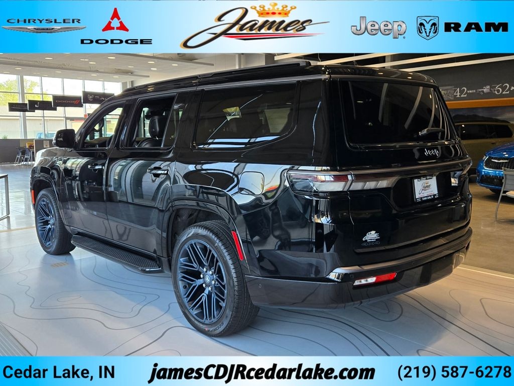 Quick Order Package 29G 85th Anniversary (118 Mph Maximum Speed Calibration, 19 Speaker McIntosh Audio System, 3 Panel Sunroof, 3rd Row 60/40 Power Recline Seat, 4x4 Decal, 85th Anniversary Edition, 85th Grand Wagoneer Decal with Flag, 85th Liftgate Decal with Flag, Auto Adjust in Reverse Exterior Mirrors, Auto Power Folding Exterior Mirrors, Auto Power Folding Mirrors, Auto-Dimming Exterior Driver Mirror, Berber Cargo Mat, Berber Front and Rear Floor Mats, Black Exterior Accents, Desert Bronze Tow Hooks, Exterior Mirrors Approach Lamps, Exterior Mirrors with Memory, Exterior Mirrors with Supplemental Signals, Heated Exterior Mirrors, Interior Accent Stitching, Interior Rear Facing Camera, Leather Trimmed Bucket Seats, P and P Park and Unpark Assist with Stop System, Side Distance Warning, Surround View Camera System, Titanium Daylight Opening Upper, Titanium Upper Grille Applique, and Wheels: 22" x 9" Painted Aluminum), Two Tone Paint Group, 4D Sport Utility, 3.0L I6, 8-Speed Automatic, 4WD, High Gloss Black, Black Leather, ABS brakes, Alloy wheels, Automatic temperature control, Compass, Electronic Stability Control, Front dual zone A/C, Fully automatic headlights, Heated door mirrors, Heated front seats, Illuminated entry, Low tire pressure warning, Navigation System, Power Liftgate, Radio: Uconnect 5 Nav with 12.0" Display, Rain sensing wipers, Rear air conditioning, Remote keyless entry, Traction control, 3.55 Rear Axle Ratio, 4-Wheel Disc Brakes, Air Conditioning, AM/FM radio: SiriusXM with 360L, Auto High-beam Headlights, Auto-dimming Rear-View mirror, Bumpers: body-color, Del