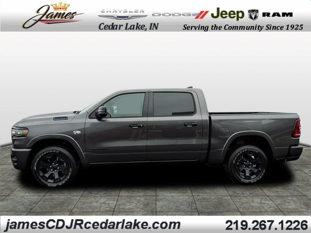 Bed Utility Group (Exterior 115V AC Outlet, MOPAR 4 Adjustable Cargo Tie-Down Hooks, MOPAR Spray in Bedliner, and Pick-Up Box Lighting), Big Horn Level 2 Equipment Group (115V Auxiliary Power Outlet, 115V Auxiliary Rear Power Outlet, 12" Touchscreen Display, 2nd Row in Floor Storage Bins, 3 Rear Seat Head Restraints, 4 Way Front Headrests, 400W Inverter, 4G LTE Wi-Fi Hot Spot, 9 Amplified Speakers with Subwoofer, Air Conditioning ATC with Dual Zone Control, Apple CarPlay, Auto Power-Folding Mirrors, Auto-Dimming Exterior Driver Mirror, Auto-Dimming Rear-View Mirror, Black Exterior Mirrors, Black Premium Power Mirrors, Body Color Fender Flares, Bucket Seats, Center Console Parts Module, Cluster 7.0" TFT Color Display, Configurable Drive Mode, Connected Travel and Traffic Services, Connectivity - US/Canada, Convex Wide-Angle Exterior Mirror Insert, Deluxe Cloth Bucket Seats, Disassociated Touchscreen Display, Exterior Mirrors Courtesy Lamps, Exterior Mirrors with Heating Element, Exterior Mirrors with Supplemental Signals, Front Seat Back Map Pockets, Full Length Floor Console, Global Telematics Box Module, Glove Box Lamp, Google Android Auto, GPS Antenna Input, GPS Navigation, HD Radio, Heated Front Seats, Heated Steering Wheel, Integrated Center Stack Radio, Integrated Voice Command with Bluetooth, Leather Wrapped Steering Wheel, LED Dome Lamp with on/Off Switch, LED Footwell Lighting, Manual Adjust 4-Way Front Passenger Seat, Media Hub with 2 Charge Only USBs, Overhead LED Lamps, Power 2-Way Driver Lumbar Adjust, Power Adjust 8-Way Driver Seat, Power Adjustable Pedals, Premium Overhead Console, Radio: Uconnect 5 Navigation with 12.0" Display, Rear 60/40 Folding Seat, Rear Center Armrest, Rear Power Sliding Window, Rear Window Defroster, Remote Tailgate Release, Security Alarm, SiriusXM Radio Service, SiriusXM with 360L, Steering Wheel Mounted Audio Controls, Sun Visors with Illuminated Vanity Mirrors, Universal Garage Door Opener, and USB Host Flip), Night Edition (Accent Color Door Handles, Accent Color Premium Power Mirrors, Accent Color Tailgate Handle, Anti-Spin Differential Rear Axle, Black Exterior Truck Badging, Black Headlamp Bezels, Black Interior Accents, Black Painted Exterior Mirrors Caps, Black Tail Lamp Bezels, Body Color Front Bumper, Body Color Rear Bumper with Step Pads, Dual Exhaust with Black Tips, Grille Black Surround Black Mesh, RAM Grille Badge - Black, and Wheels: 20" x 9.0" Aluminum Painted Clad), Quick Order Package 27Z Big Horn, 4-Wheel Disc Brakes, 48V Belt Starter Generator, 6 Speakers, ABS brakes, Air Conditioning, Alloy wheels, AM/FM radio, Apple CarPlay/Android Auto, Auto High-beam Headlights, Brake assist, Bumpers: chrome, Cloth Bucket Seats, Cluster 12" TFT Color Display, Compass, Delay-off headlights, Dome Dual LED Reading Lamp, Driver door bin, Dual front impact airbags, Dual front side impact airbags, Dual-Pane Panoramic Sunroof, Electronic Stability Control, Front anti-roll bar, Front Bucket Seats, Front Center Armrest w/Storage, Front fog lights, Front reading lights, Front wheel independent suspension, Fully automatic headlights, Heated door mirrors, Illuminated entry, Low tire pressure warning, Manual Adjust 4-Way Driver Seat, Manual Folding Exterior Mirrors, MOPAR Front and Rear Rubber Floor Mats, Multi-Function Tailgate, Occupant sensing airbag, Outside temperature display, Overhead airbag, Overhead console, Panic alarm, ParkView Rear Back-Up Camera, Passenger door bin, Passenger vanity mirror, Power door mirrors, Power steering, Power windows, Radio data system, Radio: Uconnect 5 W with 8.4" Display, RAM Grille Badge - Chrome, RAM's Head Badge, Rear anti-roll bar, Rear step bumper, Rear Underseat Compartment Storage, Rear Wheelhouse Liners, Remote keyless entry, Speed control, Supplier Part Tracking (J-1), Tachometer, Telescoping steering wheel, Price includes: $3500 - 2026 National Retail Consumer Cash . Exp. 01/0
