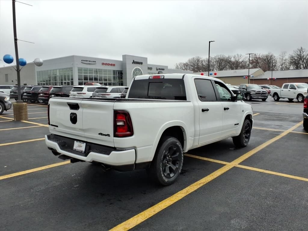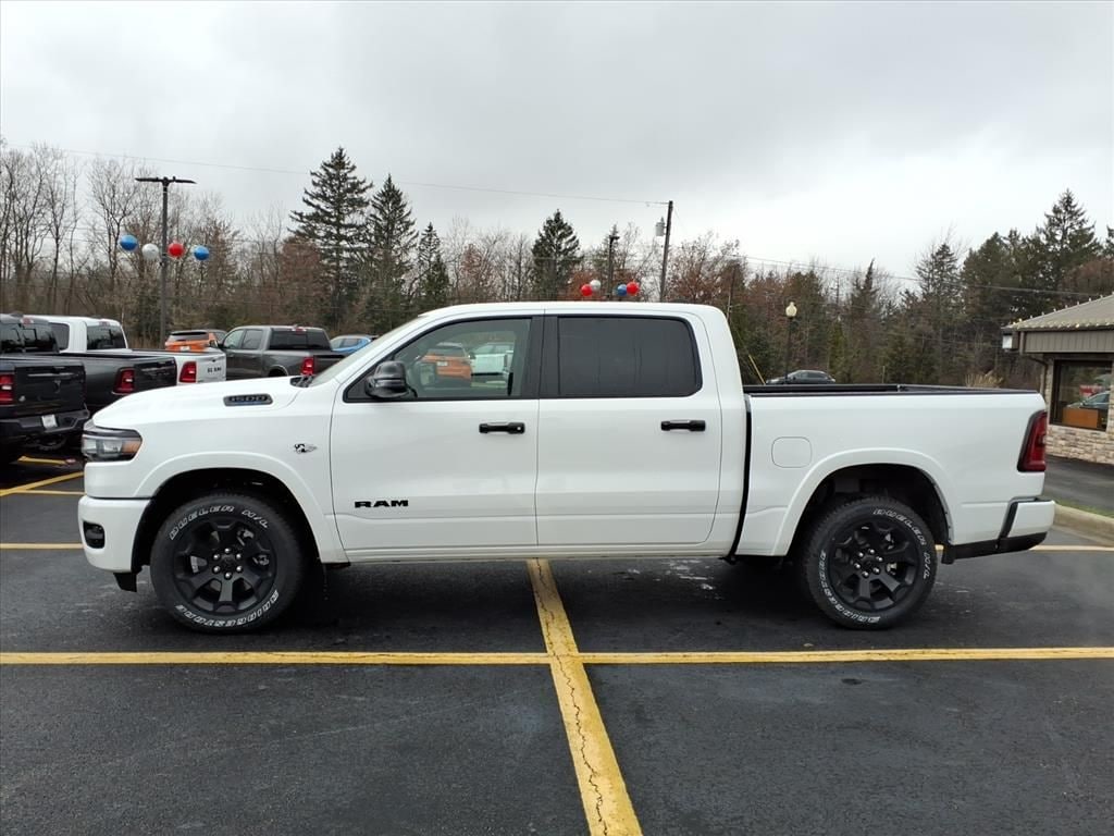 Bed Utility Group (Exterior 115V AC Outlet, MOPAR 4 Adjustable Cargo Tie-Down Hooks, MOPAR Spray in Bedliner, and Pick-Up Box Lighting), Big Horn Level 2 Equipment Group (115V Auxiliary Power Outlet, 115V Auxiliary Rear Power Outlet, 12" Touchscreen Display, 2nd Row in Floor Storage Bins, 3 Rear Seat Head Restraints, 4 Way Front Headrests, 400W Inverter, 4G LTE Wi-Fi Hot Spot, 9 Amplified Speakers with Subwoofer, Air Conditioning ATC with Dual Zone Control, Apple CarPlay, Auto Power-Folding Mirrors, Auto-Dimming Exterior Driver Mirror, Auto-Dimming Rear-View Mirror, Black Exterior Mirrors, Black Premium Power Mirrors, Body Color Fender Flares, Bucket Seats, Center Console Parts Module, Cluster 7.0" TFT Color Display, Configurable Drive Mode, Connected Travel and Traffic Services, Connectivity - US/Canada, Convex Wide-Angle Exterior Mirror Insert, Deluxe Cloth Bucket Seats, Disassociated Touchscreen Display, Exterior Mirrors Courtesy Lamps, Exterior Mirrors with Heating Element, Exterior Mirrors with Supplemental Signals, Front Seat Back Map Pockets, Full Length Floor Console, Global Telematics Box Module, Glove Box Lamp, Google Android Auto, GPS Antenna Input, GPS Navigation, HD Radio, Heated Front Seats, Heated Steering Wheel, Integrated Center Stack Radio, Integrated Voice Command with Bluetooth, Leather Wrapped Steering Wheel, LED Dome Lamp with on/Off Switch, LED Footwell Lighting, Manual Adjust 4-Way Front Passenger Seat, Media Hub with 2 Charge Only USBs, Overhead LED Lamps, Power 2-Way Driver Lumbar Adjust, Power Adjust 8-Way Driver Seat, Power Adjustable Pedals, Premium Overhead Console, Radio: Uconnect 5 Navigation with 12.0" Display, Rear 60/40 Folding Seat, Rear Center Armrest, Rear Power Sliding Window, Rear Window Defroster, Remote Tailgate Release, Security Alarm, SiriusXM Radio Service, SiriusXM with 360L, Steering Wheel Mounted Audio Controls, Sun Visors with Illuminated Vanity Mirrors, Universal Garage Door Opener, and USB Host Flip), Night Edition (Accent Color Door Handles, Accent Color Premium Power Mirrors, Accent Color Tailgate Handle, Anti-Spin Differential Rear Axle, Black Exterior Truck Badging, Black Headlamp Bezels, Black Interior Accents, Black Painted Exterior Mirrors Caps, Black Tail Lamp Bezels, Body Color Front Bumper, Body Color Rear Bumper with Step Pads, Dual Exhaust with Black Tips, Grille Black Surround Black Mesh, RAM Grille Badge - Black, and Wheels: 20" x 9.0" Aluminum Painted Clad), Quick Order Package 27Z Big Horn, 4-Wheel Disc Brakes, 48V Belt Starter Generator, 6 Speakers, ABS brakes, Air Conditioning, Alloy wheels, AM/FM radio, Apple CarPlay/Android Auto, Auto High-beam Headlights, Brake assist, Bumpers: chrome, Cloth Bucket Seats, Cluster 12" TFT Color Display, Compass, Delay-off headlights, Dome Dual LED Reading Lamp, Driver door bin, Dual front impact airbags, Dual front side impact airbags, Dual-Pane Panoramic Sunroof, Electronic Stability Control, Front anti-roll bar, Front Bucket Seats, Front Center Armrest w/Storage, Front fog lights, Front reading lights, Front wheel independent suspension, Fully automatic headlights, Heated door mirrors, Illuminated entry, Low tire pressure warning, Manual Adjust 4-Way Driver Seat, Manual Folding Exterior Mirrors, MOPAR Front and Rear Rubber Floor Mats, Multi-Function Tailgate, Occupant sensing airbag, Outside temperature display, Overhead airbag, Overhead console, Panic alarm, ParkView Rear Back-Up Camera, Passenger door bin, Passenger vanity mirror, Power door mirrors, Power steering, Power windows, Radio data system, Radio: Uconnect 5 W with 8.4" Display, RAM Grille Badge - Chrome, RAM's Head Badge, Rear anti-roll bar, Rear step bumper, Rear Underseat Compartment Storage, Rear Wheelhouse Liners, Remote keyless entry, Speed control, Supplier Part Tracking (J-1), Tachometer, Telescoping steering wheel, Price includes: $3500 - 2026 National Retail Consumer Cash . Exp. 01/0