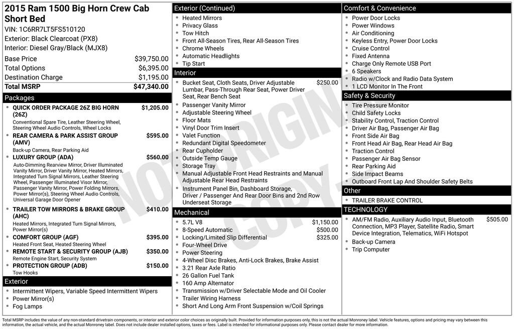 2015 Ram 1500 Big Horn Black Clearcoat 4WD HEMI 5.7L V8 Multi Displacement VVT