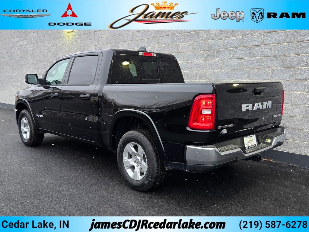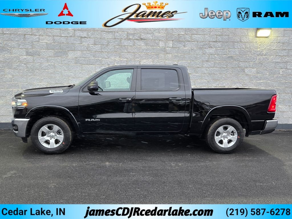 Big Horn Level 1 Equipment Group (115V Auxiliary Power Outlet, 2nd Row in Floor Storage Bins, 3 Rear Seat Head Restraints, 4 Way Front Headrests, 400W Inverter, Auto Power-Folding Mirrors, Auto-Dimming Exterior Driver Mirror, Auto-Dimming Rear-View Mirror, Black Exterior Mirrors, Black Premium Power Mirrors, Body Color Fender Flares, Bucket Seats, Center Console Parts Module, Convex Wide-Angle Exterior Mirror Insert, Deluxe Cloth Bucket Seats, Exterior Mirrors Courtesy Lamps, Exterior Mirrors with Heating Element, Exterior Mirrors with Supplemental Signals, Front Seat Back Map Pockets, Full Length Floor Console, Glove Box Lamp, Heated Front Seats, Heated Steering Wheel, Leather Wrapped Steering Wheel, Manual Adjust 4-Way Front Passenger Seat, Power 2-Way Driver Lumbar Adjust, Power Adjust 8-Way Driver Seat, Power Adjustable Pedals, Rear 60/40 Folding Seat, Rear Center Armrest, Rear Dome with on/Off Switch Lamp, Rear Power Sliding Window, Rear Window Defroster, SiriusXM Radio Service, SiriusXM Satellite Radio, Steering Wheel Mounted Audio Controls, Sun Visors with Illuminated Vanity Mirrors, and Universal Garage Door Opener), Quick Order Package 23Z Big Horn, 1500 Big Horn/Lone Star, 4D Crew Cab, 3.6L V6 24V VVT, 8-Speed Automatic, 4WD, Diamond Black Crystal Pearlcoat, Black Cloth, Auto High-beam Headlights, Radio: Uconnect 5 W with 8.4" Display, 3.21 Rear Axle Ratio, 4-Wheel Disc Brakes, 6 Speakers, ABS brakes, Air Conditioning, Delay-off headlights, Driver door bin, Dual front impact airbags, Dual front side impact airbags, Front Center Armrest w/Storage, Front Extra Heavy Duty Shock Absorbers, Front fog lights, Low tire pressure warning, MOPAR Front and Rear Rubber Floor Mats, Occupant sensing airbag, Overhead airbag, Overhead console, Panic alarm, Passenger door bin, Passenger vanity mirror, Power door mirrors, Power steering, Power windows, Rear Extra Heavy Duty Shock Absorbers, Security Alarm, Telescoping steering wheel, Tilt steering wheel, Traction control, Trip computer, and Wheels: 18" x 8" Cast-Aluminum Painted. 2026 Ram 1500 Big Horn/Lone Star 4