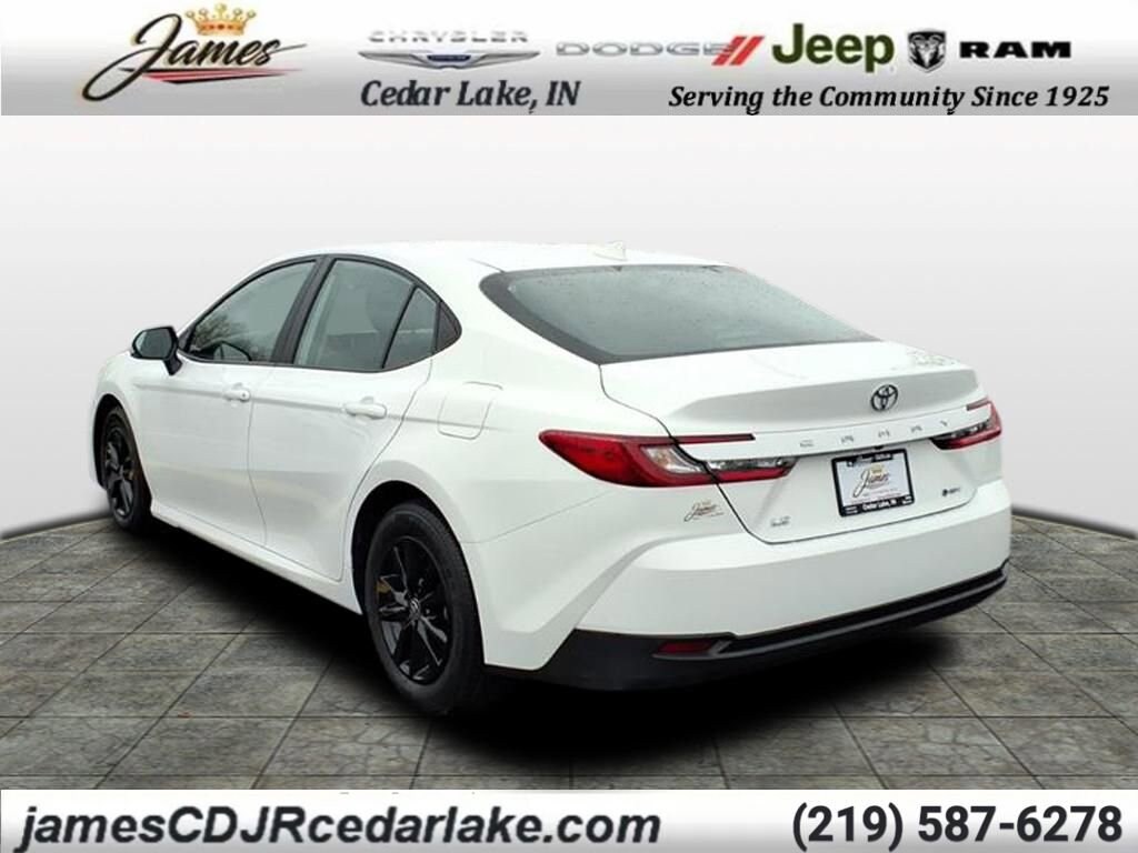 White 2025 Toyota Camry 4D Sedan LE 2.5L 4-Cylinder 16V DOHC 53/50 City/Highway MPG eCVT FWD