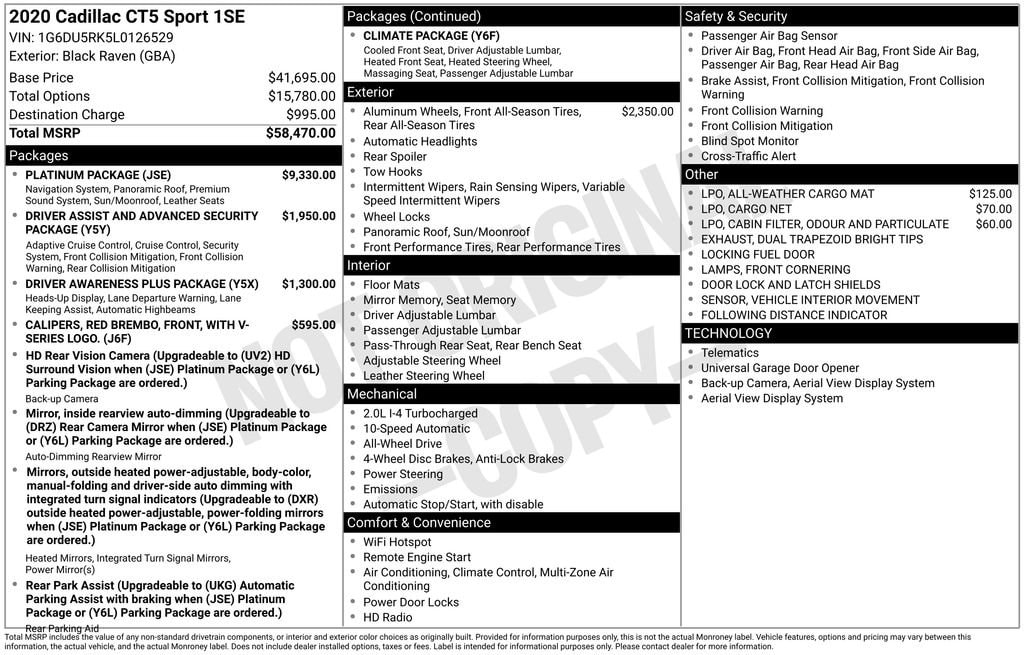 Recent Arrival! 2020 Cadillac CT5 Sport Platinum Edition. Clean CARFAX. Black Raven