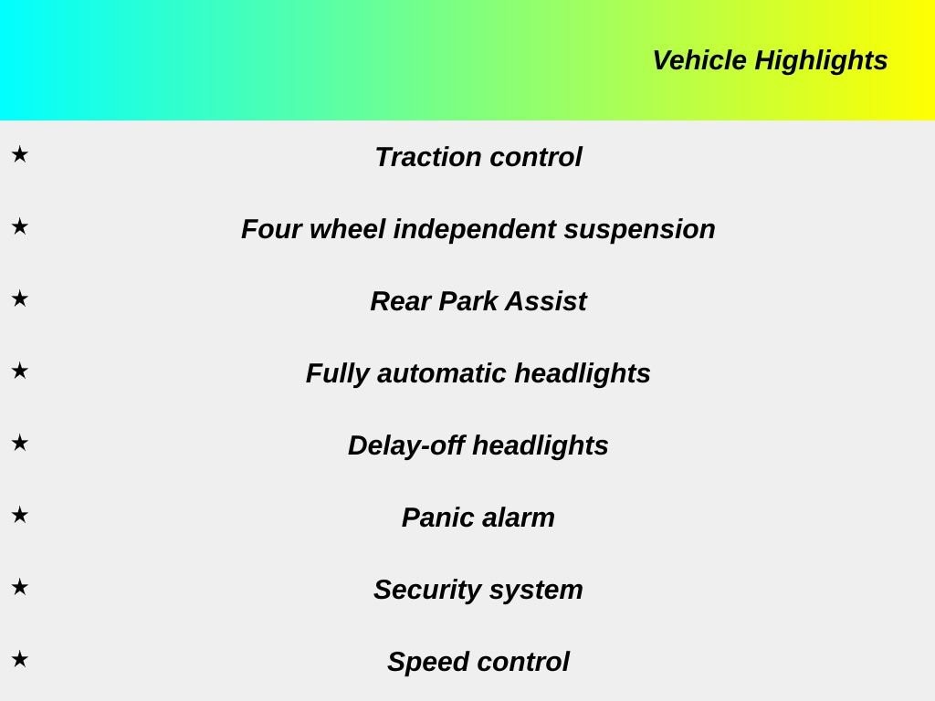 - Fully automatic headlights