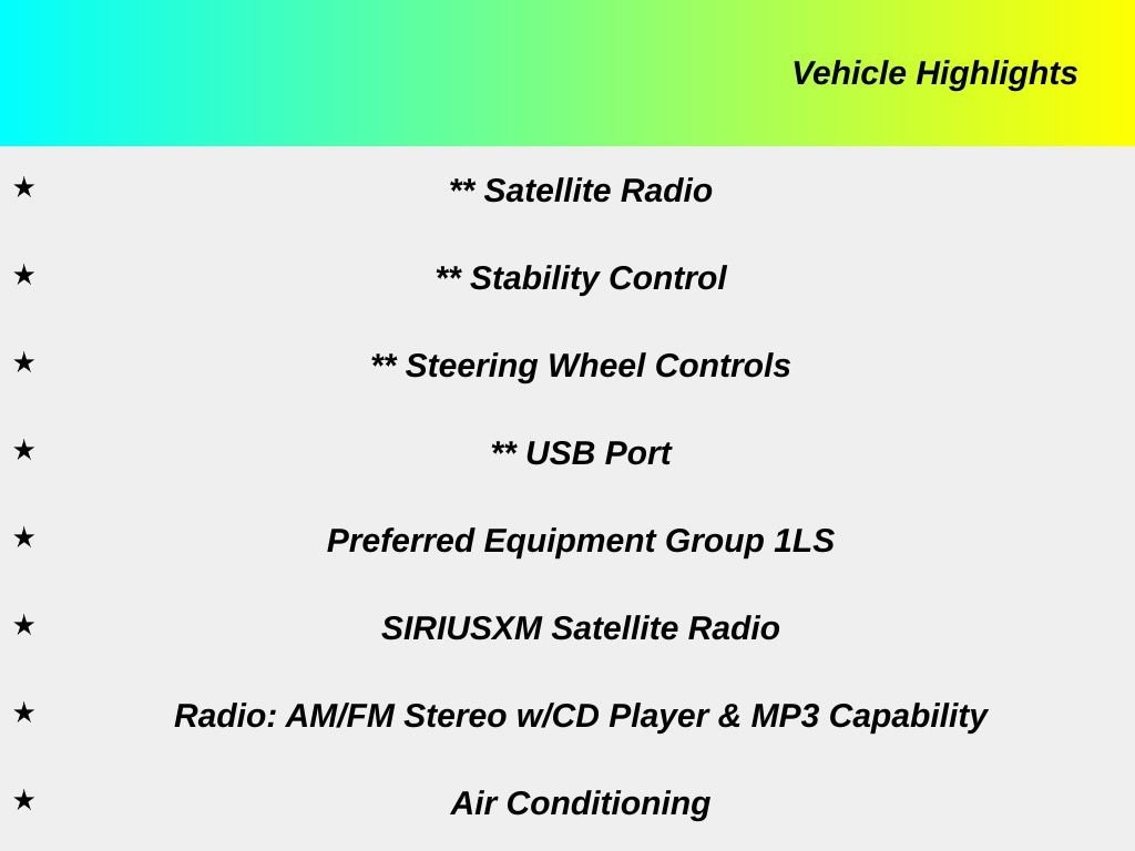 - Radio: AM/FM Stereo w/CD Player & MP3 Capability