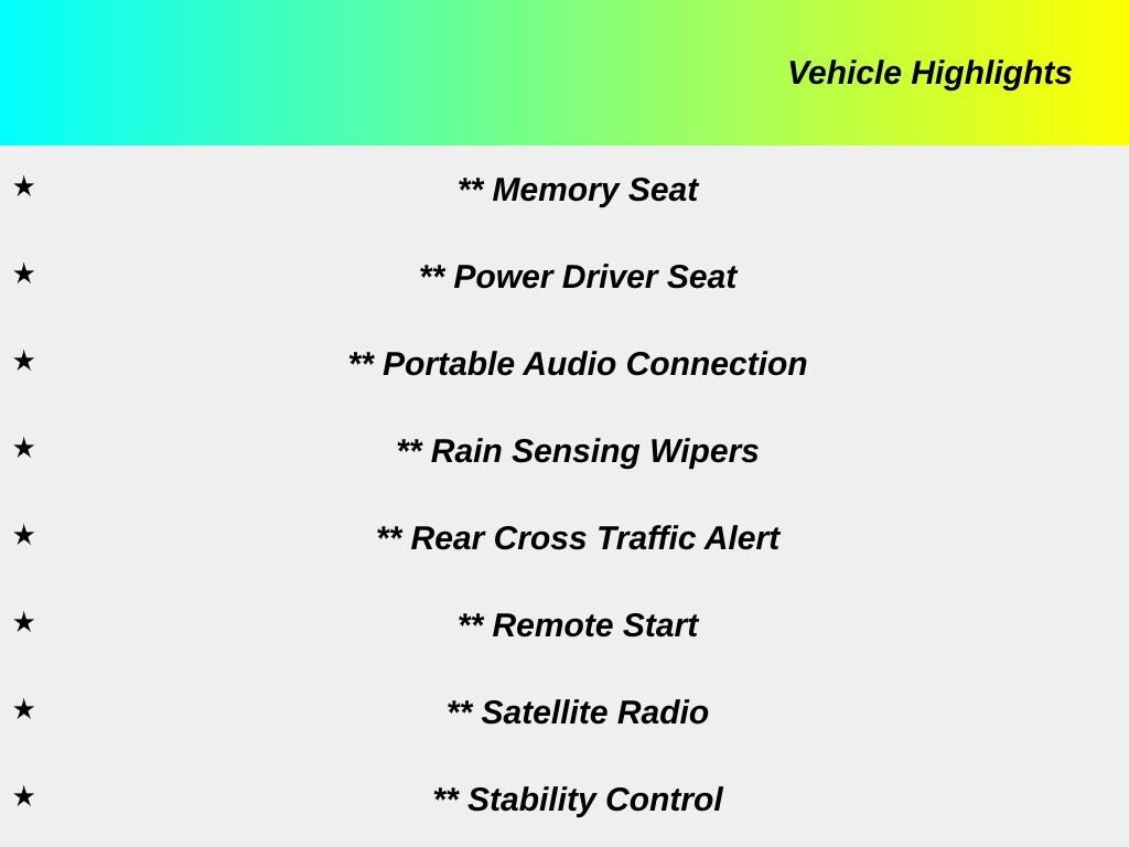 - Engine: 3.6L V6 24V VVT UPG I with Stop/Start