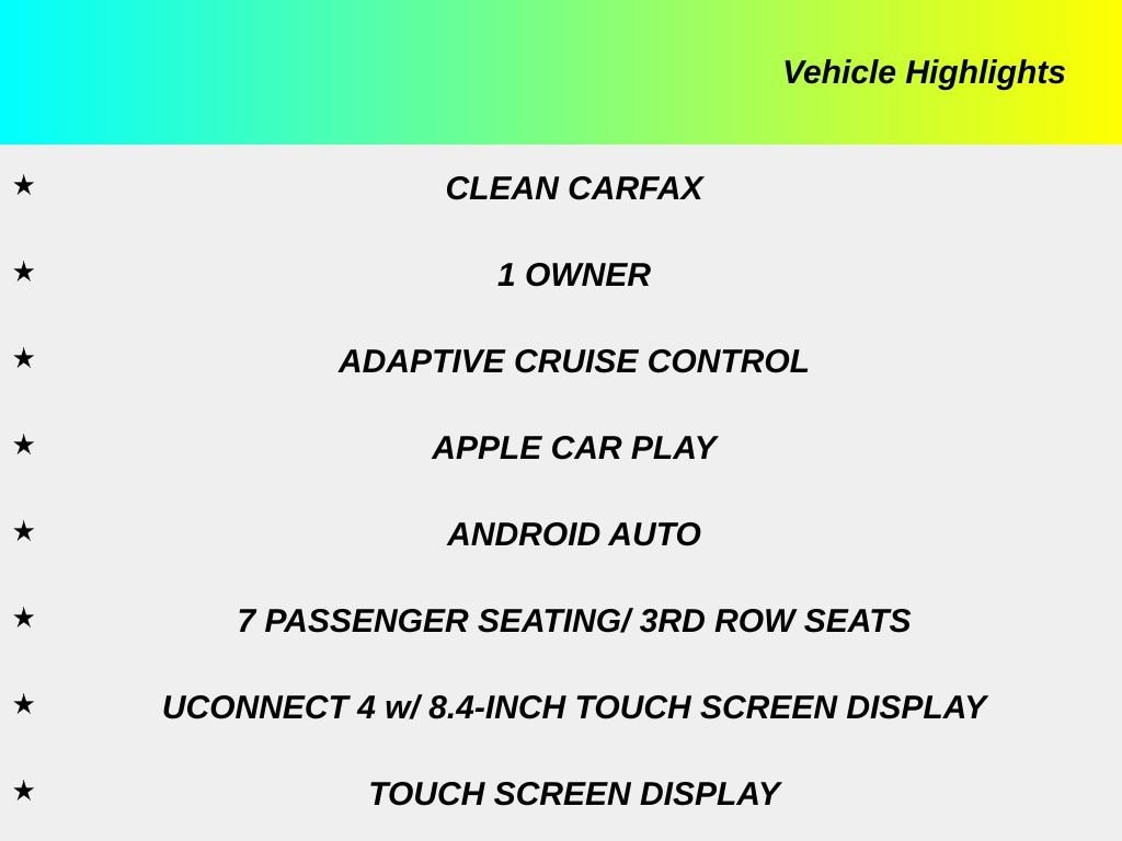 Recent Arrival! 2024 Dodge Durango SXT Plus CLEAN CARFAX, 1 OWNER, ADAPTIVE CRUISE CONTROL, APPLE CAR PLAY, ANDROID AUTO, 7 PASSENGER SEATING/ 3RD ROW SEATS, UCONNECT 4 w/ 8.4-INCH TOUCH SCREEN DISPLAY, TOUCH SCREEN DISPLAY, PUSH BUTTON START, KEYLESS ENTRY, HEATED FRONT SEATS, HEATED STEERING WHEEL, ALL WHEEL DRIVE / AWD, 8-WAY POWER DRIVER SEAT, SECOND ROW BUCKET SEATS, 3RD ROW / THIRD ROW SEATING, POWER MOONROOF / SUNROOF, PARKVIEW REAR BACK UP CAMERA, BLIND SPOT AND CROSS PATH DETECTION, PREMIUM ALUMINUM WHEELS, STEERING WHEEL W/ AUDIO CONTROLS, INTEGRATED VOICE COMMAND W/ BLUETOOTH, DEEP TINT SUNSCREEN (PRIVACY) GLASS, LOW MILES!!, BALANCE OF FACTORY WARRANTY, POWER HEATED MIRRORS, Durango SXT Plus, 4D Sport Utility, 3.6L V6 24V VVT, 8-Speed Automatic, AWD, White Knuckle Clearcoat, Black Cloth, 2nd Row 60/40 Fold & Tumble Seat, 3rd Row Remote Headrest Dumping, 3rd Row Seat, 3rd Row Seating Group, 6 Speakers, 7-Passenger Seating, Adaptive Cruise Control w/Stop, Auto-dimming Rear-View mirror, Automatic temperature control, Brake assist, Bumpers: body-color, Delay-off headlights, Electronic Stability Control, Four wheel independent suspension, Front Center Armrest w/Storage, Front dual zone A/C, Full Speed Forward Collision Warning Plus, Fully automatic headlights, GPS Antenna Input, Heated door mirrors, Heated Front Seats, Heated Steering Wheel, Illuminated entry, Integrated Roof Rail Crossbars, Integrated Voice Command w/Bluetooth, Outside temperature display, Overhead console, Panic alarm, ParkView Rear Back-Up Camera, Passenger door bin, Passenger vanity mirror, Power driver seat, Power Sunroof, Quick Order Package 2BK SXT Plus, Radio: Uconnect 4 w/8.4" Display, Rear air conditioning, Rear reading lights, Rear seat center armrest, Remote keyless entry, Roof rack, Speed control, Speed-sensing steering, Speed-Sensitive Wipers, Steering wheel mounted audio controls, Tachometer, Telescoping steering wheel, Traction control, Trip computer, Variably intermittent wipers, Wheels: 18" x 8.0" Painted Aluminum. CARFAX One-Owner. Clean CARFAX. White Knuckle Clearcoat