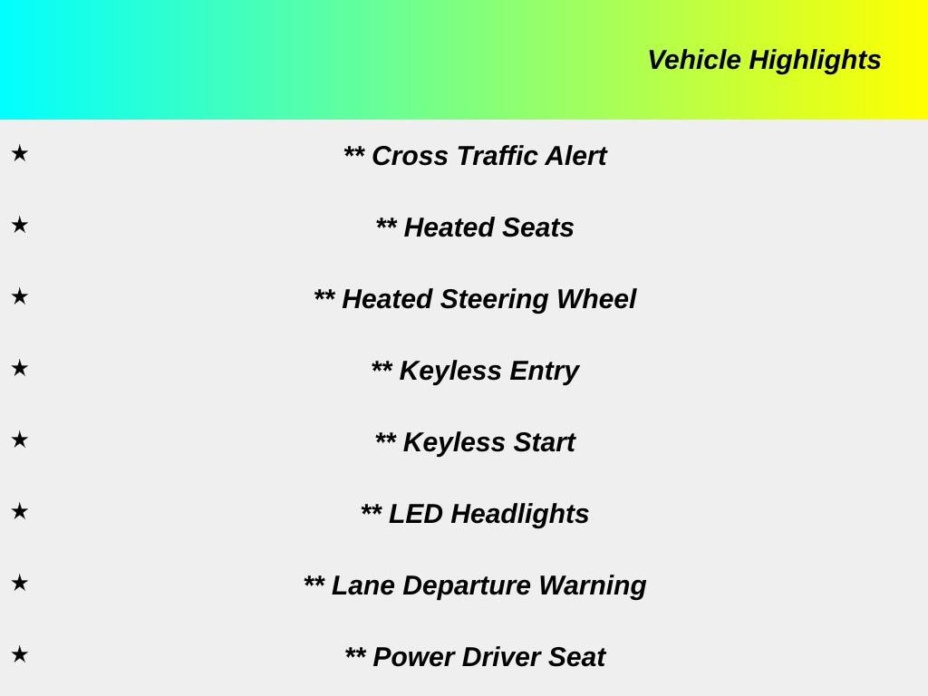 ** Adaptive Cruise Control, ** Apple CarPlay/Android Auto, ** Automatic Emergency Braking, ** 4x4 / Four Wheel Drive /4WD, ** Backup Camera, ** Blind Spot Monitor, ** Bluetooth, Hands Free, ** Brake Assist, ** Cross Traffic Alert, ** Heated Seats, ** Heated Steering Wheel, ** Keyless Entry, ** Keyless Start, ** LED Headlights, ** Lane Departure Warning, ** Power Driver Seat, ** Rain Sensing Wipers, ** Rear Cross Traffic Alert, ** Remote Start, ** Satellite Radio, ** Stability Control, ** Steering Wheel Controls, ** USB Port, ** Hill Start Assist, ** 2nd Row USB Ports, ** Wireless Charging Pad, Grand Cherokee Laredo, 4D Sport Utility, 3.6L V6 24V VVT, 8-Speed Automatic, 4WD, Bright White Clearcoat, Black Cloth, 115V Auxiliary Power Outlet, Automatic temperature control, Front dual zone A/C, Heated Front Seats, Heated Steering Wheel, Luxury Tech Group I, Power Liftgate, Quick Order Package 23A Laredo, Radio: Uconnect 5 w/8.4" Display, Rain Sensitive Windshield Wipers, Remote Start System, Secondary Active Grille Shutters, Tire Fill Alert, Wireless Charging Pad.