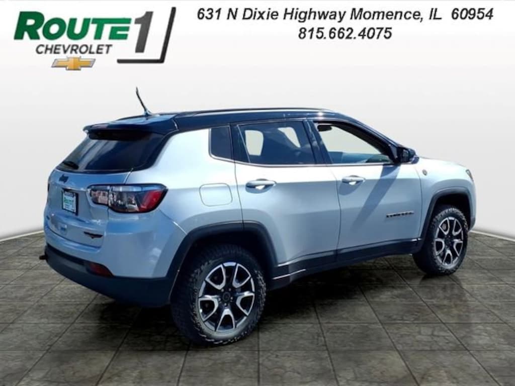 Silver Zynith Metallic Clearcoat 2025 Jeep Compass Trailhawk 4WD 8-Speed Automatic 2.0L I4 DOHC 4WD.Good Credit, Bad Credit, No Credit. Here at Route ! Chevrolet Buick we can help. Come feel the magic. We know that you have high expectations, and as a car dealer we enjoy the challenge of meeting and exceeding those standards each and every time. Allow us to demonstrate our commitment to excellence! NO GIMMICKS! Our experienced sales staff will help you find the best car for you. Browse our online inventory, schedule a test drive and look at our financing options. Find more information about our vehicles by visiting https://www.route1chevybuick.com or by calling (815)-472-3434. Odometer is 10497 miles below market average! 24/32 City/Highway MPG