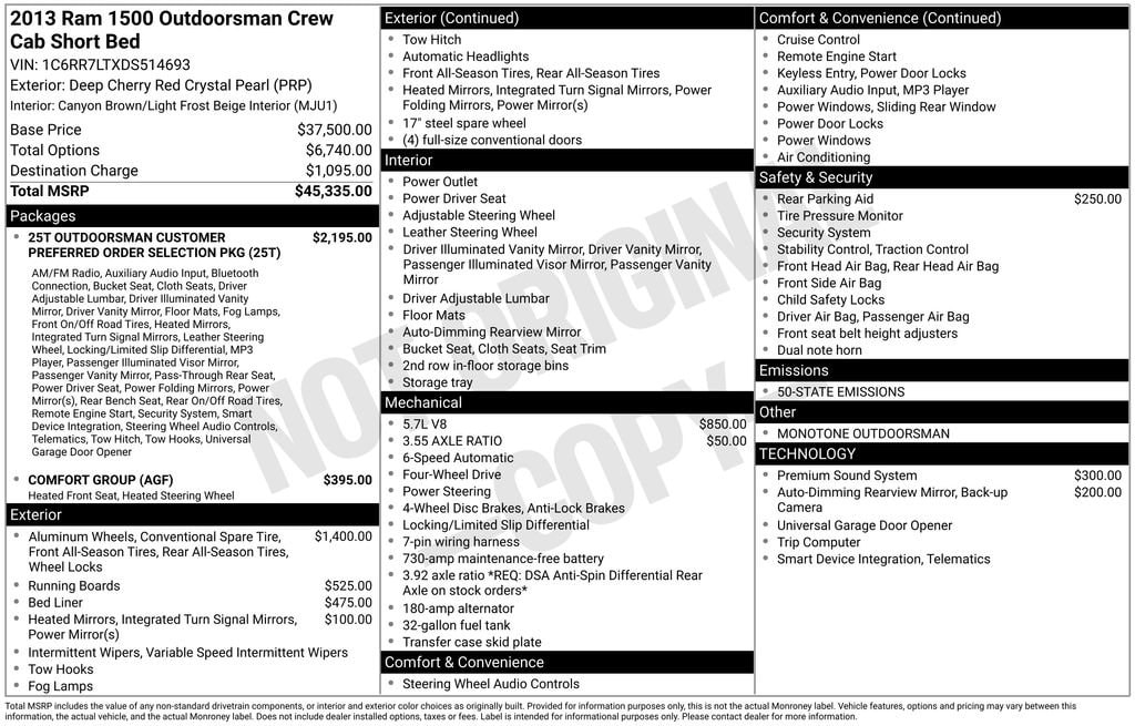 Recent Arrival! 2013 Ram 1500 Outdoorsman Deep Cherry Red Crystal Pearlcoat