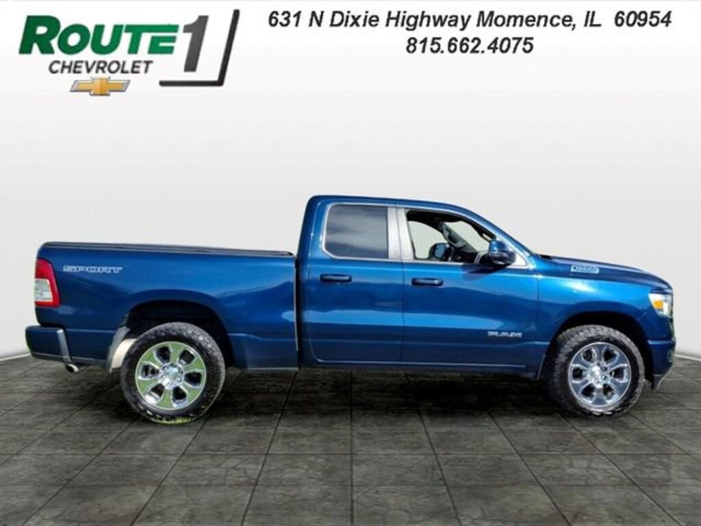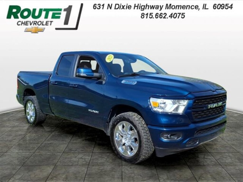 Patriot Blue Pearlcoat 2023 Ram 1500 Big Horn/Lone Star 4WD 8-Speed Automatic 3.6L V6 24V VVT ** Apple CarPlay/Android Auto, ** Backup Camera, ** Bluetooth, Hands Free, ** Cruise Control, ** Heated Seats, ** Keyless Entry, ** Keyless Start, ** Navigation System, ** Portable Audio Connection, ** Satellite Radio, ** Stability Control, ** Steering Wheel Controls, ** Tow Hitch / Trailer Hitch, ** USB Port, ** WiFi Hotspot, 4 Way Front Headrests, All R1 High Radios, All Radio Equipped Vehicles, Alloy wheels, Apple CarPlay, Auto-Dimming Exterior Driver Mirror, Black Exterior Mirrors, Black Premium Power Mirrors, Body Color Exterior Mirrors, Body Color Front Bumper, Body Color Premium Power Mirrors, Body Color Rear Bumper w/Step Pads, Center Console Parts Module, Convex Wide-Angle Mirror Insert, Emergency communication system: SiriusXM Guardian, Exterior Mirrors Courtesy Lamps, Exterior Mirrors w/Heating Element, Front Center Armrest w/Storage, Front reading lights, Front Seat Back Map Pockets, Front wheel independent suspension, Fully automatic headlights, Glove Box Lamp, Google Android Auto, GPS Navigation, Grille Surround 1 Body Color Texture 2 Black, HD Radio, Illuminated entry, Integrated Center Stack Radio, MOPAR Front & Rear Rubber Floor Mats, Outside temperature display, Panic alarm, Power 2-Way Driver Lumbar Adjust, Power door mirrors, Power-Folding Mirrors, Radio data system, Radio: Uconnect 5 Nav w/8.4 Display, RAM Grille Badge - Chrome, Rear anti-roll bar, Rear Power Sliding Window, Rear step bumper, Rear Window Defroster, Speed control, Sport Decal, Telescoping steering wheel, Tilt steering wheel, Voltmeter, Wheels: 18 x 8 Cast-Aluminum Painted.Good Credit, Bad Credit, No Credit. Here at Route ! Chevrolet Buick we can help. Come feel the magic. We know that you have high expectations, and as a car dealer we enjoy the challenge of meeting and exceeding those standards each and every time. Allow us to demonstrate our commitment to excellence! NO GIMMICKS! Our experienced sales staff will help you find the best car for you. Browse our online inventory, schedule a test drive and look at our financing options. Find more information about our vehicles by visiting https://www.route1chevybuick.com or by calling (815)-472-3434. Recent Arrival!