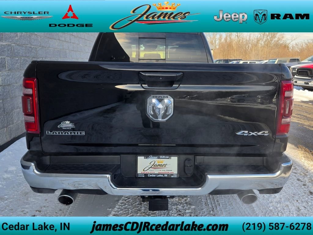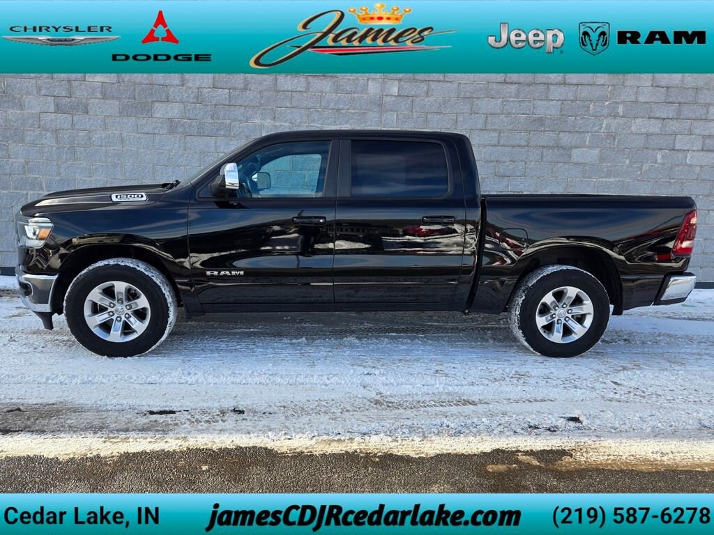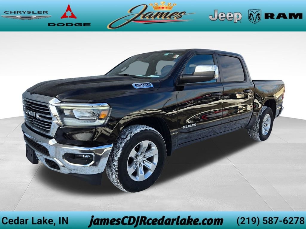 ** Apple CarPlay/Android Auto, ** Automatic Emergency Braking, ** Backup Camera, ** Blind Spot Monitor, ** Bluetooth, Hands Free, ** Brake Assist, ** Cooled Seats, ** Cross Traffic Alert, ** Cruise Control, ** Heated Seats, ** Heated Steering Wheel, ** Keyless Entry, ** Keyless Start, ** LED Headlights, ** Navigation System, ** Power Driver Seat, ** Power Driver and Passenger Seats, ** Power Sliding Rear Window, ** Remote Start, ** Steering Wheel Controls, ** USB Port, ** WiFi Hotspot, ** Universal Garage Door Opener, 1500 Laramie, 4D Crew Cab, HEMI 5.7L V8 Multi Displacement VVT eTorque, 8-Speed Automatic, 4WD, Diamond Black Crystal Pearlcoat, Black Leather, #1 Seat Foam Cushion, 12" Touchscreen Display, 2nd Row In Floor Storage Bins, 3 Rear Seat Head Restraints, 4 Way Front Headrests, 4G LTE Wi-Fi Hot Spot, Adjustable pedals, Apple CarPlay, Auto High Beam Headlamp Control, Automatic temperature control, Blind Spot & Cross Path Detection, Bucket Seats, Center Console Parts Module, Chrome Exterior Mirrors, Chrome Power-Fold Trailer Tow Mirrors, Connected Travel & Traffic Services, Connectivity - US/Canada, Disassociated Touchscreen Display, Driver Seat Memory, Electric Shift-On-Demand Transfer Case, Exterior Mirrors Courtesy Lamps, Exterior Mirrors w/Heating Element, Exterior Mirrors w/Memory, Exterior Mirrors w/Supplemental Signals, Foam Bottle Insert (Door Trim Panel), For Details, Visit DriveUconnect.com, For More Info, Call 800-643-2112, Front Door Accent Lighting, Front dual zone A/C, Front LED Fog Lamps, Front Seat Back Map Pockets, Full Length Upgraded Floor Console, Global Telematics Box Module (TBM), Google Android Auto, GPS Antenna Input, GPS Navigation, HD Radio, Heated Front Seats, Heated Steering Wheel, Integrated Center Stack Radio, Integrated Voice Command w/Bluetooth, Laramie Level 1 Equipment Group, Leather Trimmed Bucket Seats, LED Reflector Headlamps, Mirror Clearance/Running Lights, Mirror-Mounted Aux Reverse Lamps, ParkSense Front/Rear Park Assist w/Stop, Pedal memory, Power 2-Way Driver Lumbar Adjust, Power 2-Way Passenger Lumbar Adjust, Power 8-Way Driver & Passenger Seats, Power-Folding Mirrors, Quick Order Package 27H Laramie, Radio: Uconnect 5 Nav w/12.0" Display, Rain Sensitive Windshield Wipers, Rear 60/40 Folding Seat, Rear Door Accent Lighting, Rear Power Sliding Window, Remote Tailgate Release, SiriusXM Radio Service, SiriusXM w/360L, Trailer Brake Control, Trailer Light Check, Trailer Reverse Steering Control, Trailer Tire Pressure Monitoring System, Trailer Tow Group, Trailer Tow Mirrors, USB Host Flip, Ventilated Front Seats.